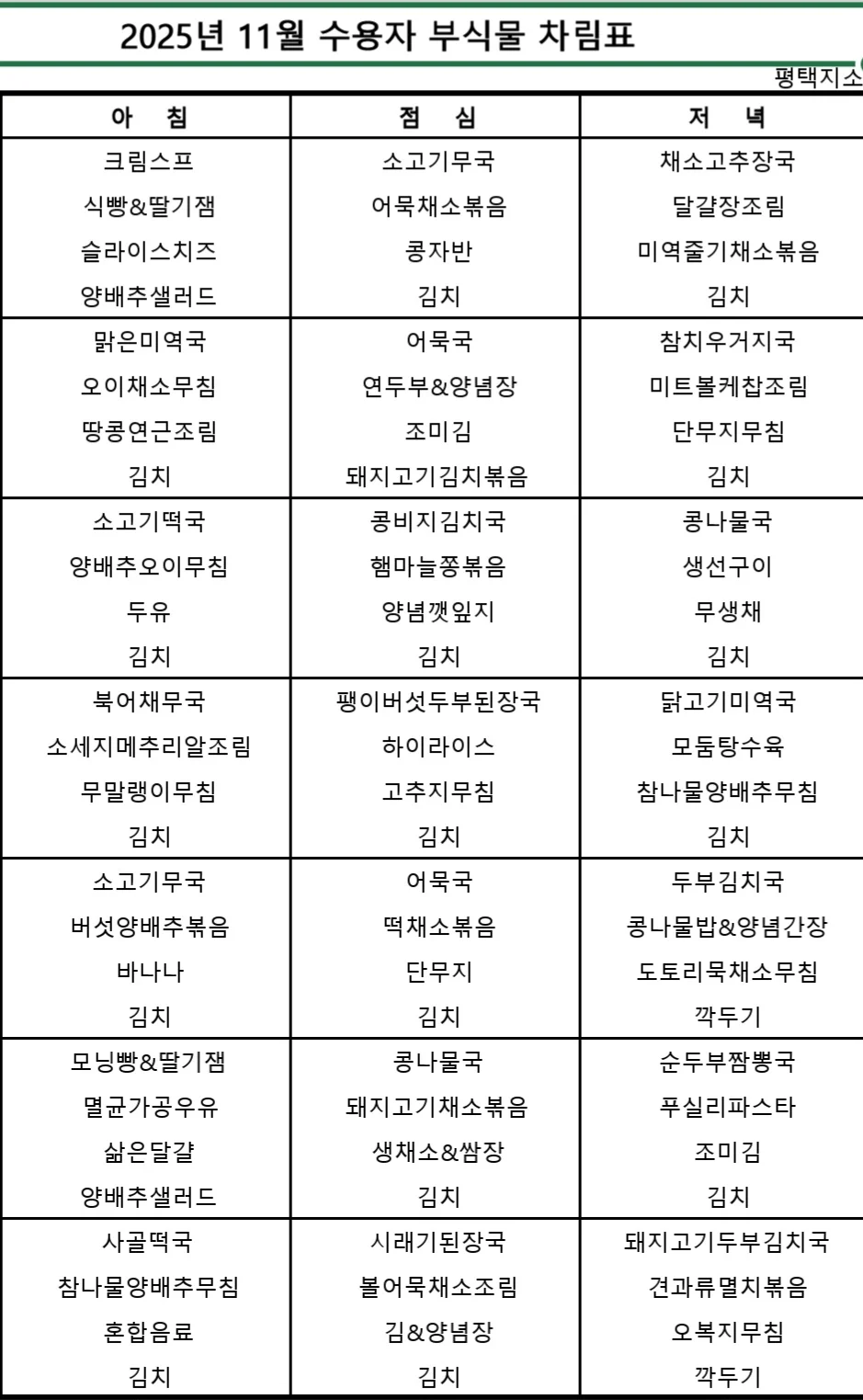 요즘 구치소 식단표